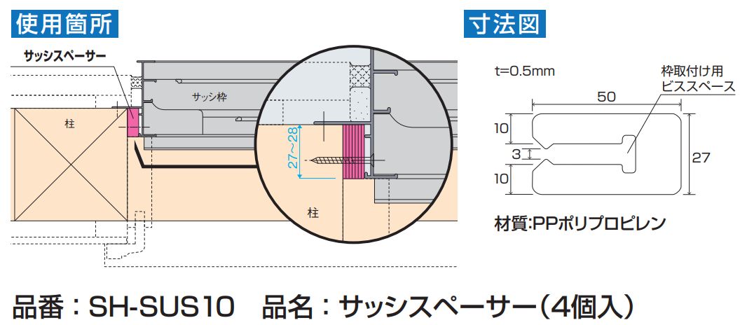 サッシ枠用隙間調整スペーサー